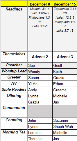 + Tuesday evening is our fortnightly Bible Chats, and we will be exploring Luke 1:26-38. This will be our final Bible Chat for the year, so pop along and share your thoughts on Mary’s role in the Christmas story. From 7:30pm, 5 Ellingworth Pde.