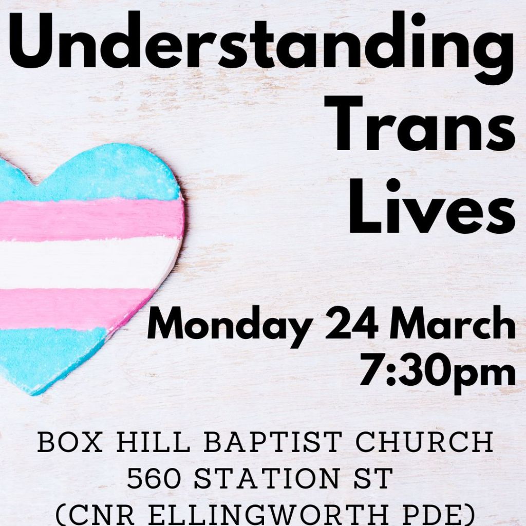 + ‘Understanding Trans Lives’: A community information forum in the church at 7.15pm for 7.30pm to learn more, build understanding and support trans people and communities. An open invitation not only to people of the church but people in our community. Special guests are trans advocate Sally Goldner, and counsellor Matt Glover, who will share stories, experiences and respond to questions. Refreshments to follow in the Gallery.