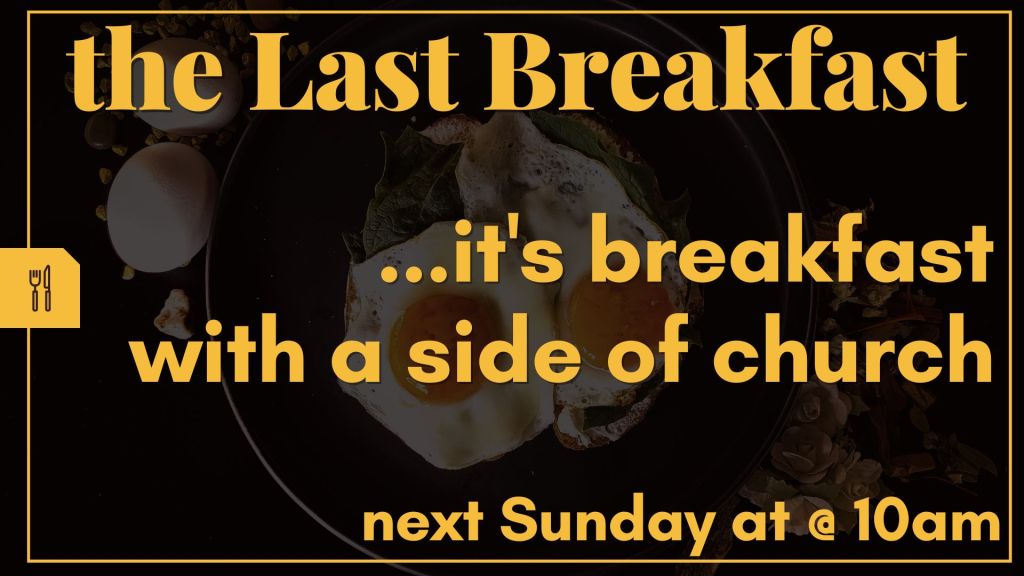 + The Last Breakfast: Come for breakfast/brunch and worship. Bring enough food to share with our guests.